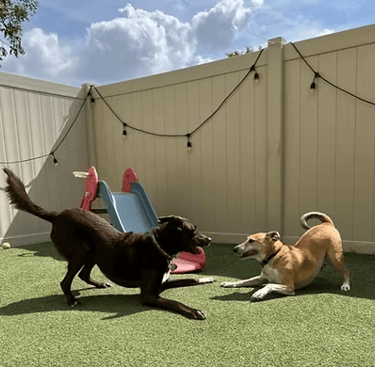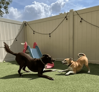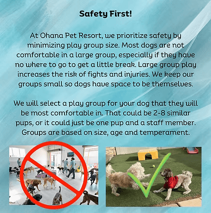 Aloha Island is standard group daycare. Your pup will play with friends the entire day, alternating between inside and outside time, monitored by staff.