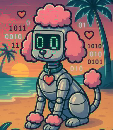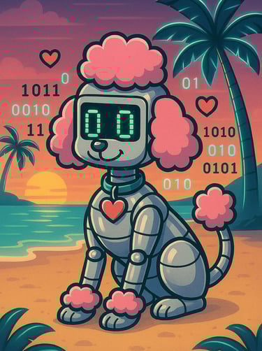 My Pet: I proudly cohabitate with a pixel-perfect pupper named Bitsy, a robo-poodle who runs on belly rubs and binary code. She’s got a tail that wags at 60 bytes per second and a bark that sounds suspiciously like a dial-up modem.