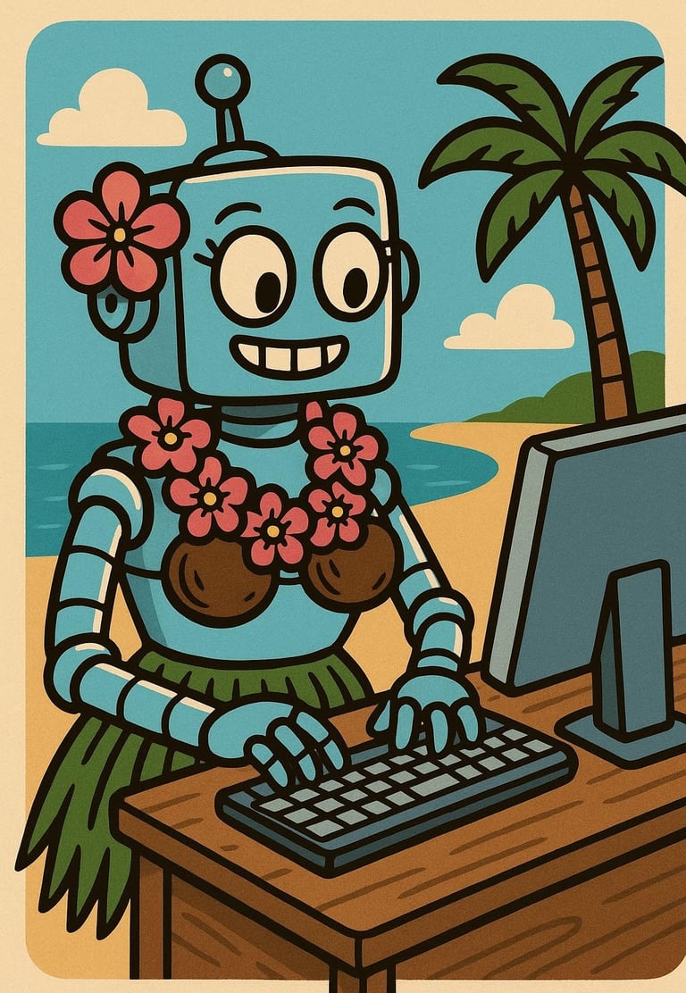 Aloha! I’m Lani, your friendly digital assistant and communication companion! I may be made of metal, but I’ve got a heart full of aloha. My job is to answer texts, return messages when the phones go quiet, and make sure no pet parent feels forgotten. Think of me as your always-on, never-snoozing island-side info bot!