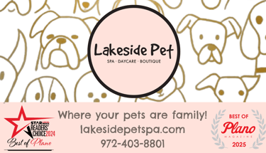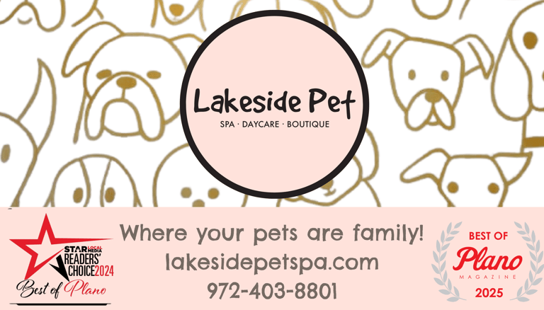For full grooming including haircuts, we recommend Lakeside Pet Spa, in Plano.